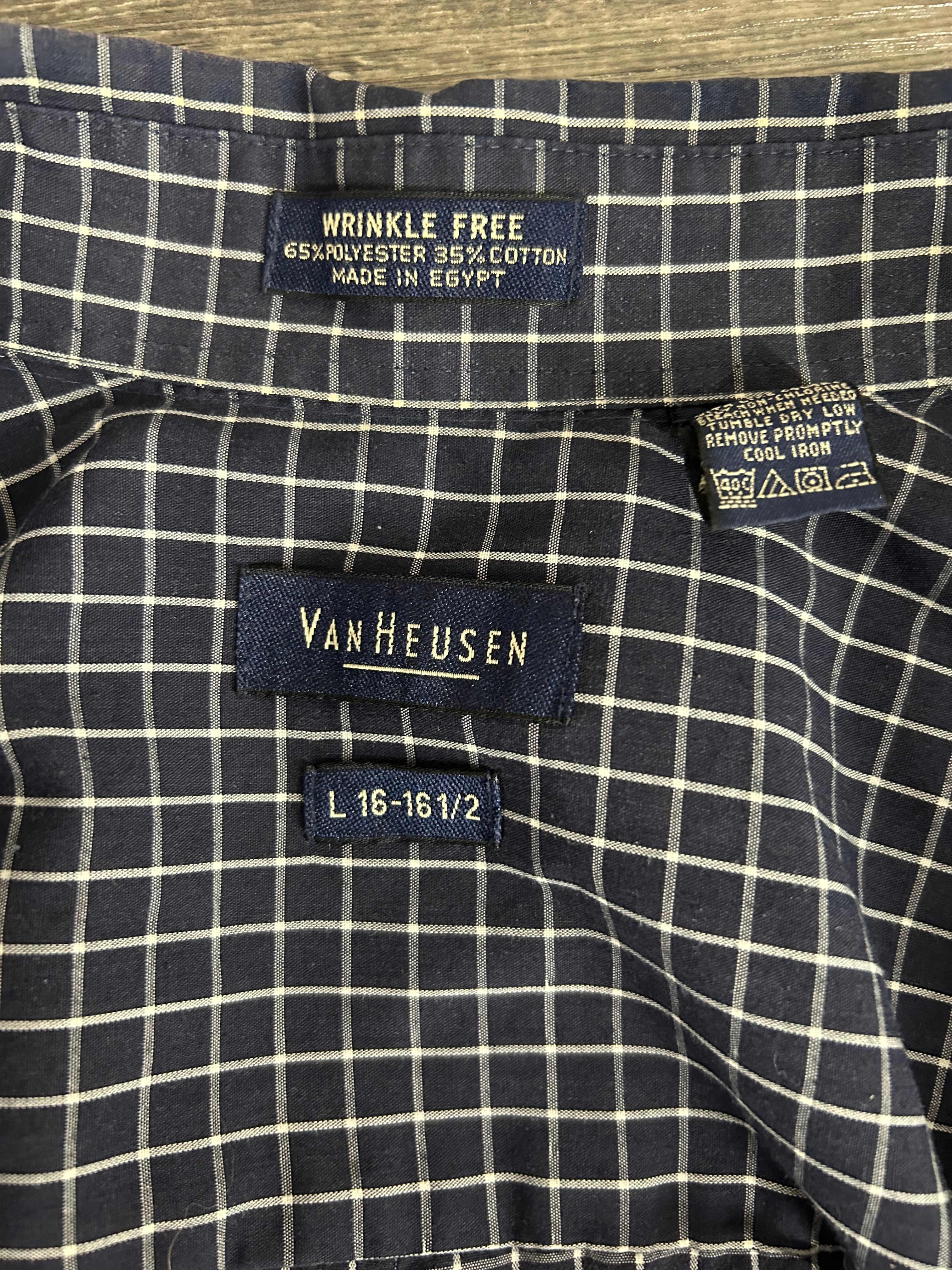 VanHeusen 半袖シャツ チェック 黒 L