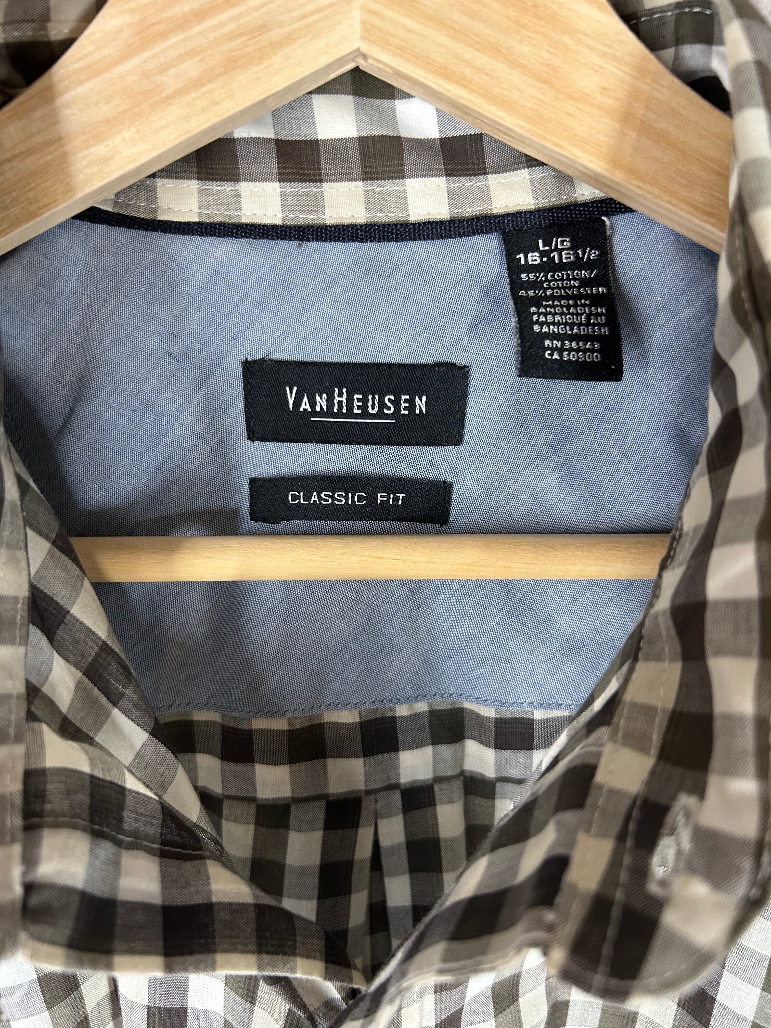 VANHEUSEN 半袖シャツ ギンガムチェック 黒