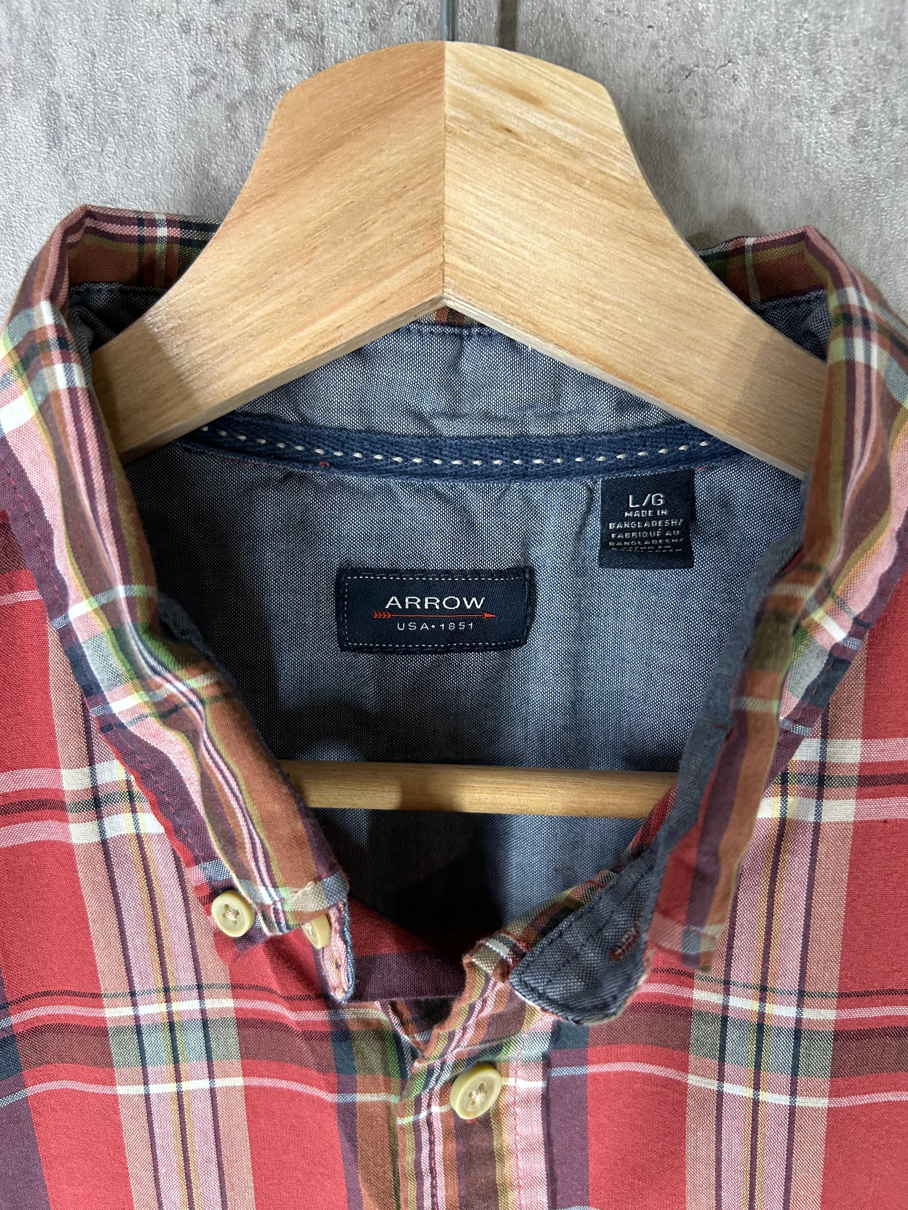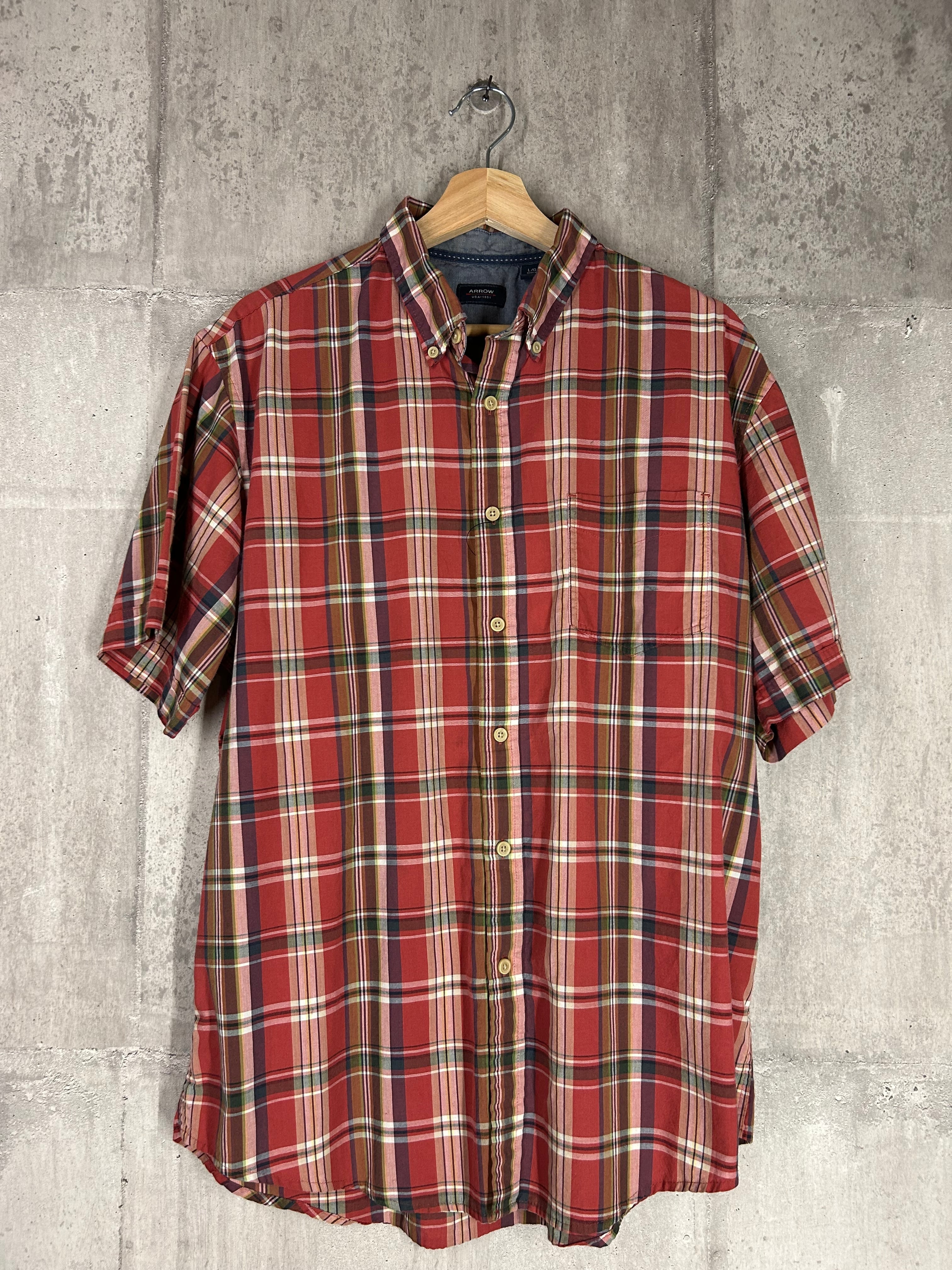 ARROW 半袖シャツ チェック 赤 Lサイズ